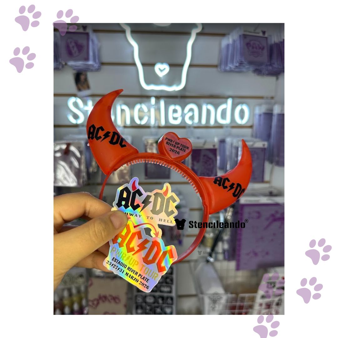 Cuernos Ac⚡dc con detalles con la fecha + 2 stickers holograficos.