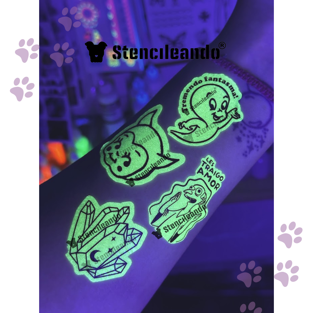 Tatuajes adhesivos temporales de 4-5cm cada uno, cortados. Listos para usar, brillan con