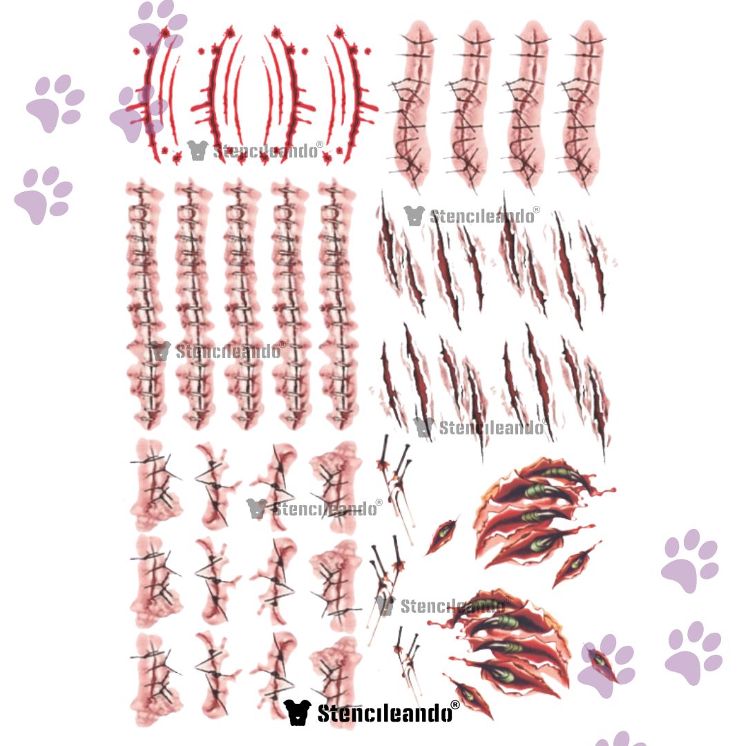 34 tattoos heridas falsas tal cual como los ves en la imagen.