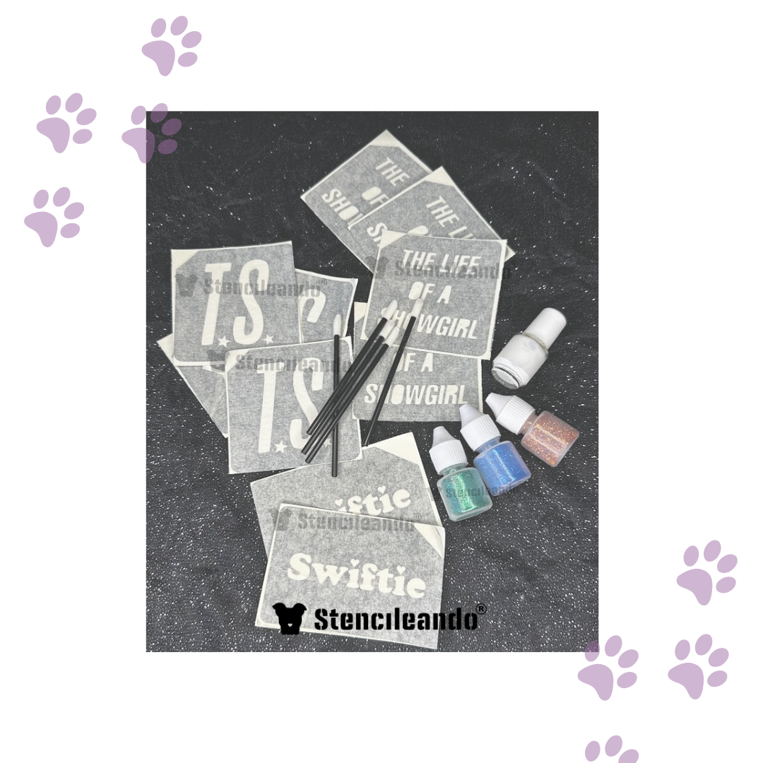 10 stencils adhesivos = 4 ts + 4 mujer del espectaculo + 2 swiftie