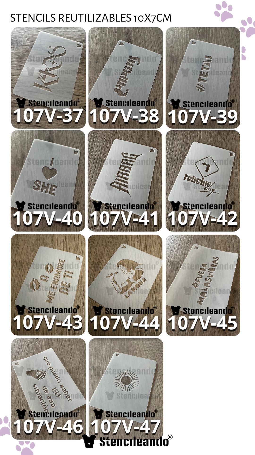 Stencils reutilizables de 10x7cm